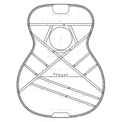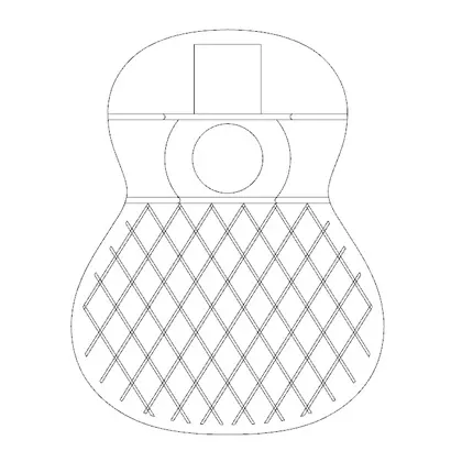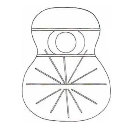 Het meest traditionele patroon bij klassieke gitaren. Meerdere smalle balkjes waaieren uit vanuit de onderzijde van het klankgat richting de onderkant van het bovenblad.