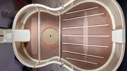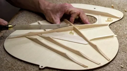 Ook het afwerken van de bracing (bijvoorbeeld scalloping) speelt een grote rol in de fine-tuning van het instrument.